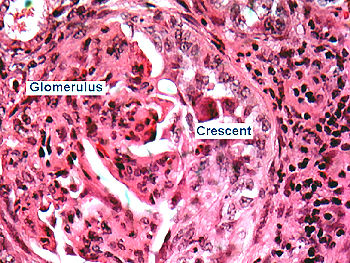 proliferating epithelial cells that line Bowman's space.